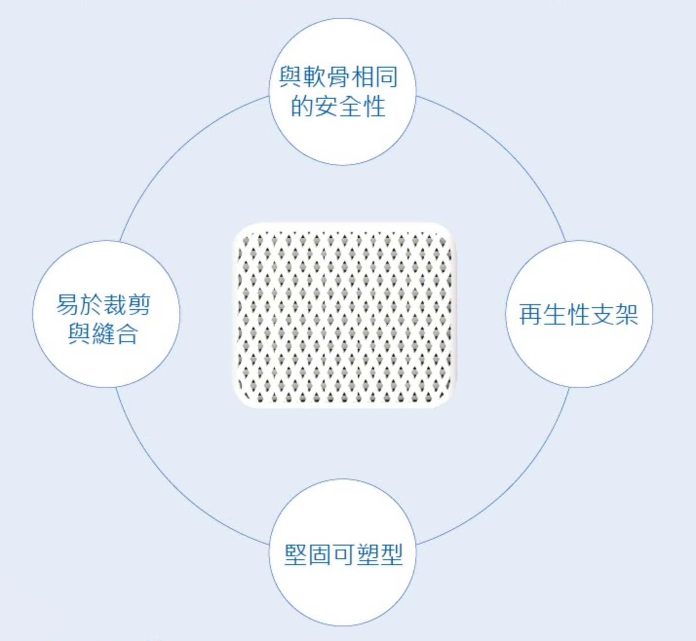 2.與軟骨相同的安全性與塑形度,可替代軟骨及現有材料